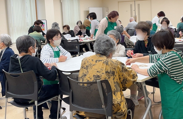 会食の前には、演芸や音楽鑑賞をしたり、みんなで歌を歌ったり、手作業をします。この日はクリスマスリースを作りました。